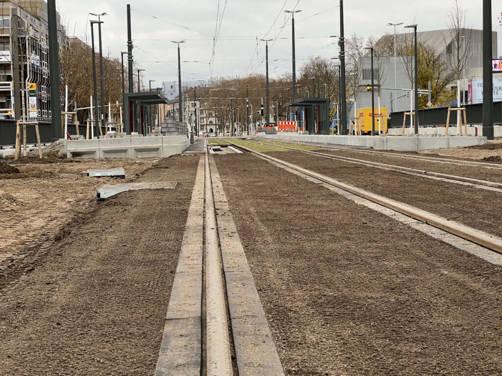 Wie die Karlsruher Schieneninfrastruktur-Gesellschaft mbH (KASIG) informiert, befindet sich der Umbau der Kriegsstraße mit einer oberirdischen neuen Gleistrasse und dem darunterliegenden Autotunnel „oben“ im Endspurt, mit Blick auf den 12. Dezember: