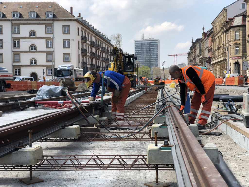 Mit den noch zu erledigenden Betonarbeiten am Karlstor ist der Rohbau fast ausschließlich auf diesen Bereich ganz im Westen der umzubauenden Kriegsstraße mit einer neuen oberirdischen Gleistrasse und dem darunterliegenden Autotunnel begrenzt, heißt es weiter.