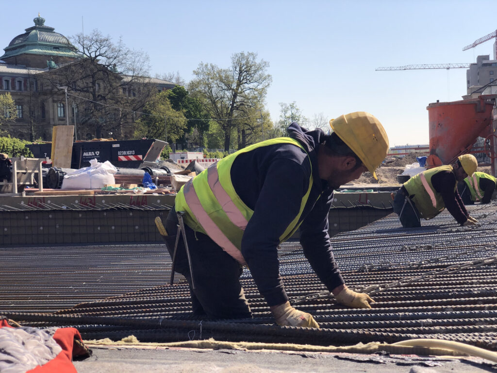 Am Karlstor wird die letzte Lücke des Rohbaus geschlossen: Wände wurden in die Höhe bewehrt und geschalt, zuletzt wird die Decke betoniert. Nach dem Aushärten des Betons folgt die Abdichtung der sehr hoch liegenden Tunneldecke, um dann auch hier mit den Arbeiten an der endgültigen Oberfläche beginnen zu können.