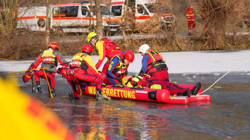 News Notfallübung: So üben Retter den Einsatz auf dem Eis