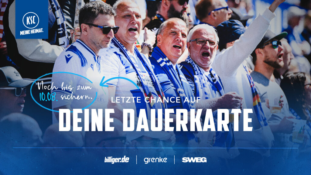 Nach dem ersten Heimspiel der Saison gibt es für alle interessierten Fans noch einmal die Möglichkeit, sich eine KSC-Dauerkarte zu sichern. Bis Sonntag, 10. August 2025, um 23:59 Uhr steht die Dauerkarte im Online-Ticketshop zur Verfügung.