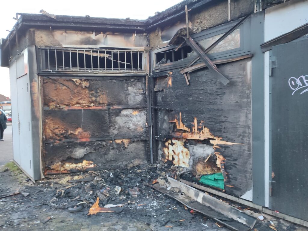 Die Feuerwehr löschte den Papiercontainer sowie die Fassade des Kiosks im Außenbereich. Allerdings hatte das Feuer auch auf den Innenbereich übergegriffen.