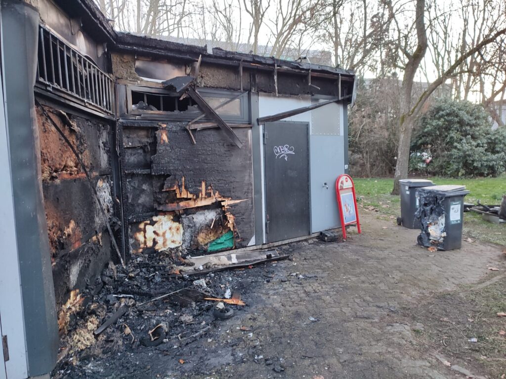 Vor Ort brannte ein Papiercontainer an der Fassade eines Kiosks in voller Ausdehnung. Auch hatte das Feuer bereits auf das Kioskgebäude übergriffen, teilt die Feuerwehr in einer Pressemeldung mit.