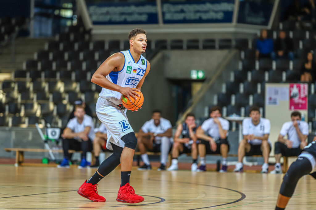 Adam Pechacek war immer wieder unterm Korb erfolgreich. In der Defense ließen die Löwen hingegen zu oft starke Dreier-Würfe der Gegner zu, die sich diese Gelegenheiten nicht nehmen ließen und kurzzeitig auf 6:12 erhöhen konnten. Die LIONS kämpften sich aber zurück und es entwickelte sich ein ausgeglichenes Spiel auf Augenhöhe. Das spiegelte sich auch im Endstand nach den ersten zehn Minuten wider: 19:17 für Karlsruhe.