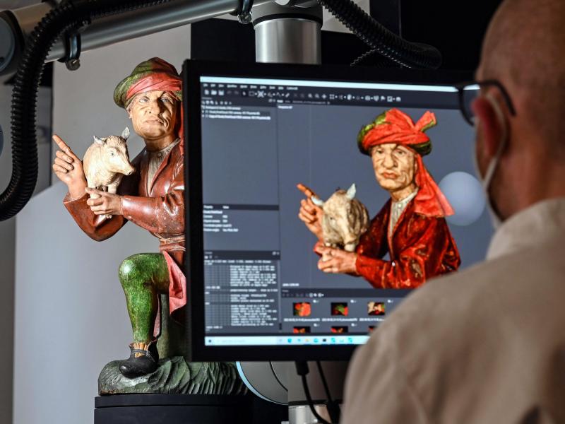 Nach aufwendiger Restaurierung kehren zwei wertvolle Skulpturen des Isenheimer Altars nach Colmar (Frankreich) zurück. Bevor der «Gabenbringer mit Hahn» und der «Gabenbringer mit Ferkel» wieder ins Elsass gehen, wurden sie im Karlsruher Schloss in 3D gescannt. Die zwei Holzskulpturen mit bewegter Geschichte gehören dem Badischen Landesmuseum Karlsruhe, sind aber seit fast vier Jahrzehnten als Dauerleihgabe in Colmar. «Die Konservierung der Skulpturen war uns ein großes Anliegen», sagte Museumsdirektor Eckart Köhne. «Der Isenheimer Altar gehört zu den bedeutendsten Werken der europäischen Kunstgeschichte.»