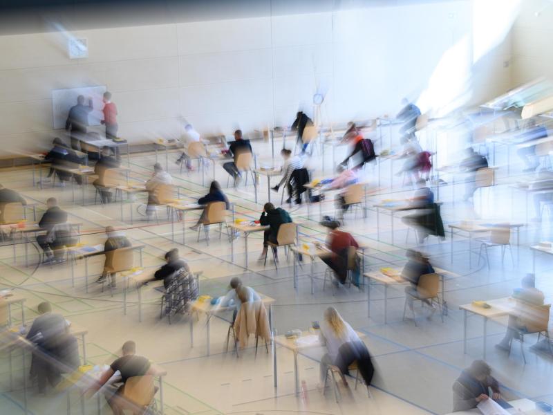 Um Corona-Infektionen zu verhindern, gilt beim Prüfungsmarathon bis zum 20. beziehungsweise 21. Mai (berufliche Gymnasien) in den Schulen Maskenpflicht. Getestete und nicht getestete Schüler sollen währenddessen räumlich voneinander getrennt werden.