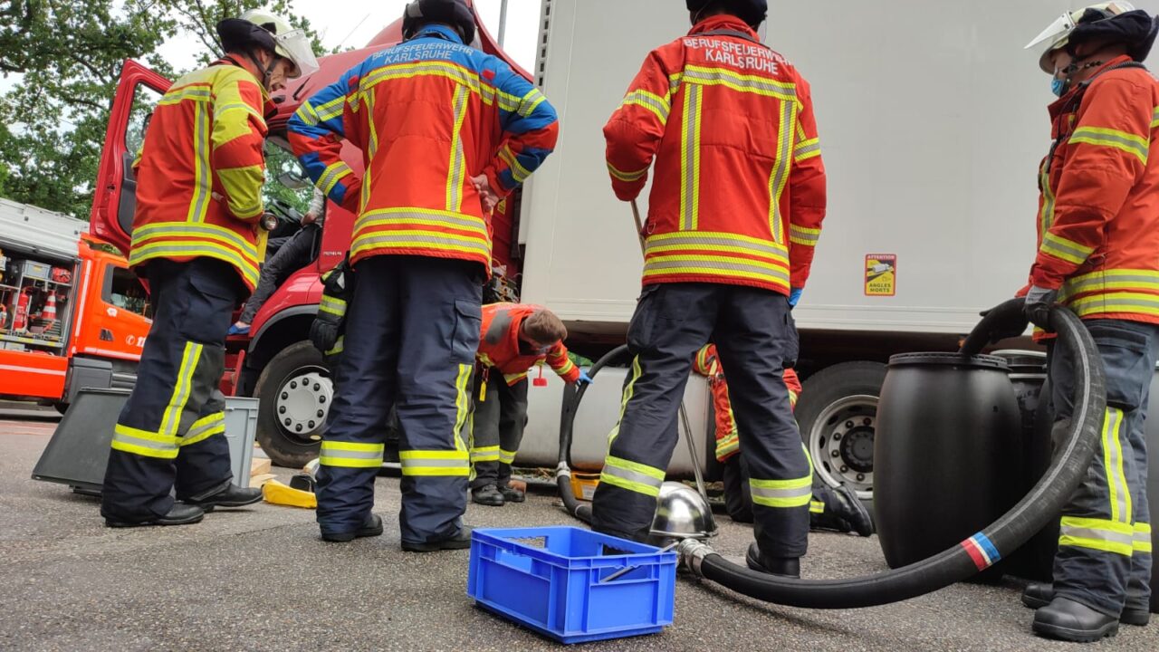 Feuerwehr Karlsruhe dichtete Leck provisorisch