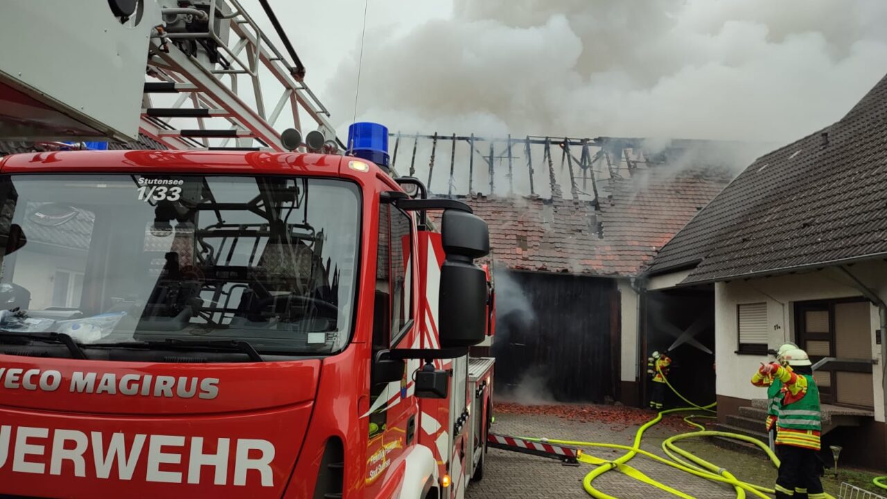 Brand Scheunen-Brand in Stutensee-Spöck sorgt für Feuerwehreinsatz