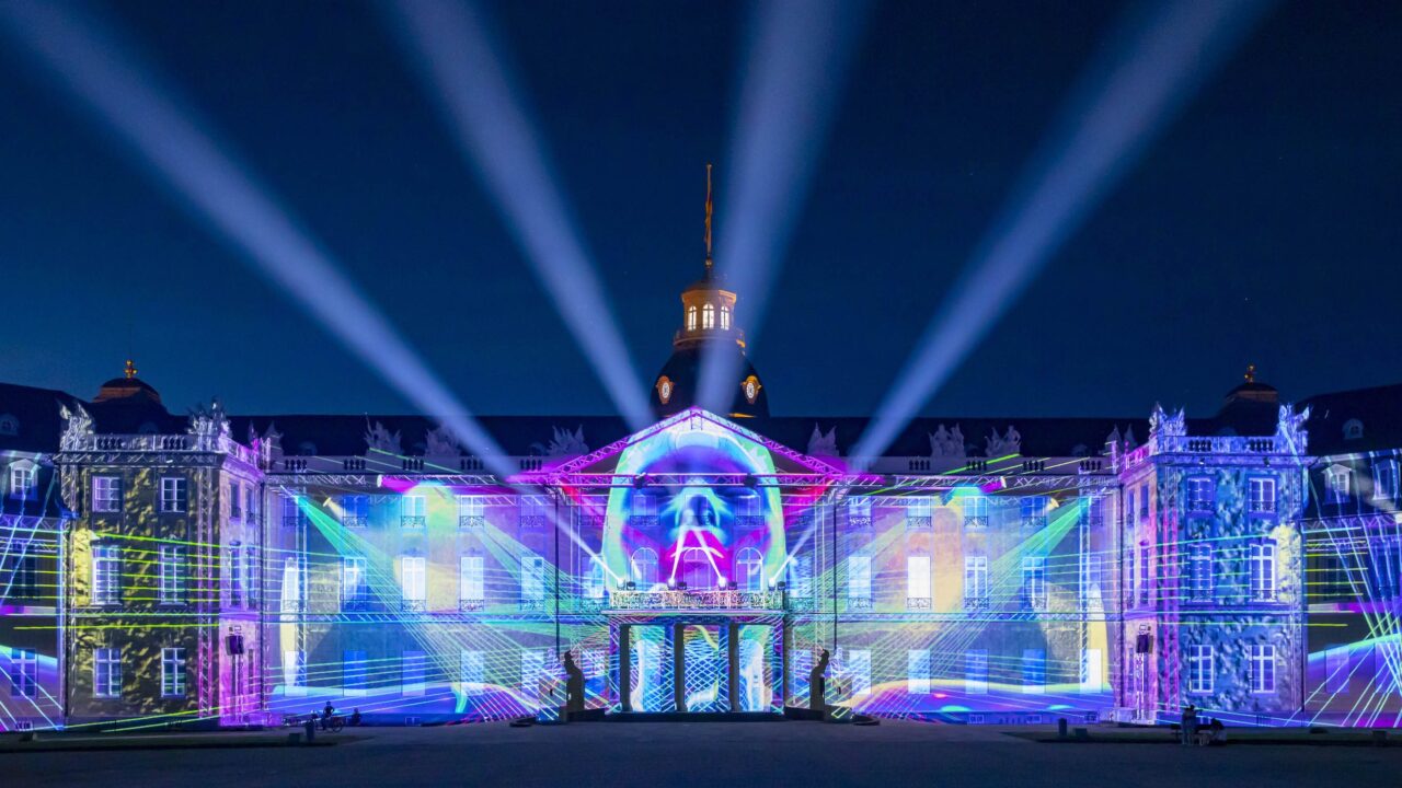 Ab dem 16. August 2023, wird das Schloss Karlsruhe wieder in Projection Mappings internationaler Künstlerinnen und Künstlern sowie Kollektiven erstrahlen. Die SCHLOSSLICHTSPIELE starten in ihre neunte Spielzeit, begleitet von viel Medien- und Lichtkunst.