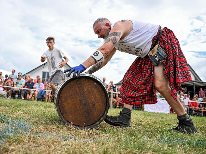 Teams aus ganz Süddeutschland sind am Samstag bei den «Oberschwäbischen Highländgames» in Disziplinen wie Baumstamm-Ziehen und Whiskeyfass-Rollen gegeneinander angetreten.