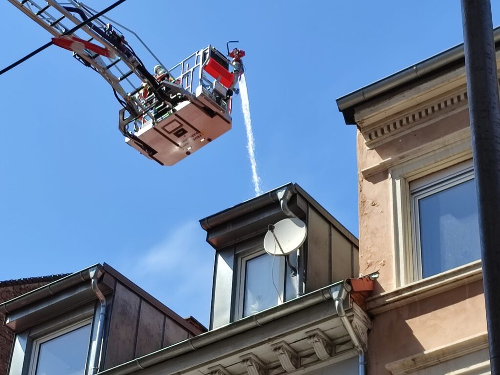 Aus bislang unbekannter Ursache kam es am Mittwochabend in einem Mehrfamilienhaus in der Karlsruher Südstadt offenbar zu einem Schwelbrand im Bereich des Hausdaches.