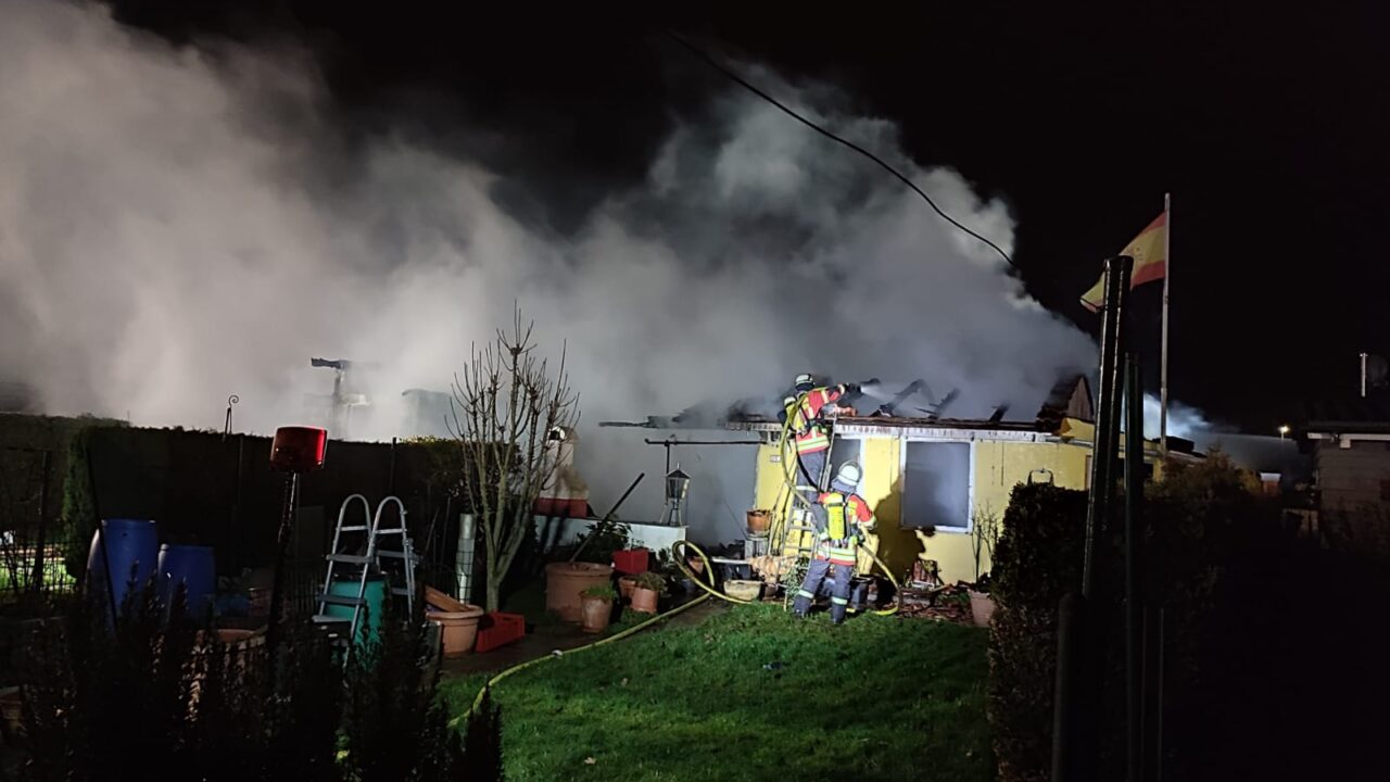 Das Feuer entstand vermutlich zwischen zwei Grundstücken und griff in der Folge auf umstehende Lauben über.