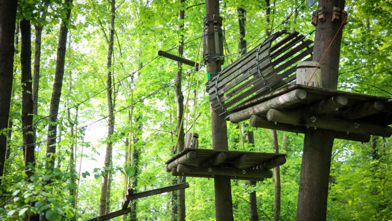 Hier sieht man den Wald mal aus einer anderen Sicht: Auf dem Turmberg findet sich der Waldseilpark Karlsruhe - ein Hochseilgarten inmitten der Natur. Er bietet 12 Parcours mit verschiedenen Schwierigkeitsstufen für die persönliche Herausforderung.