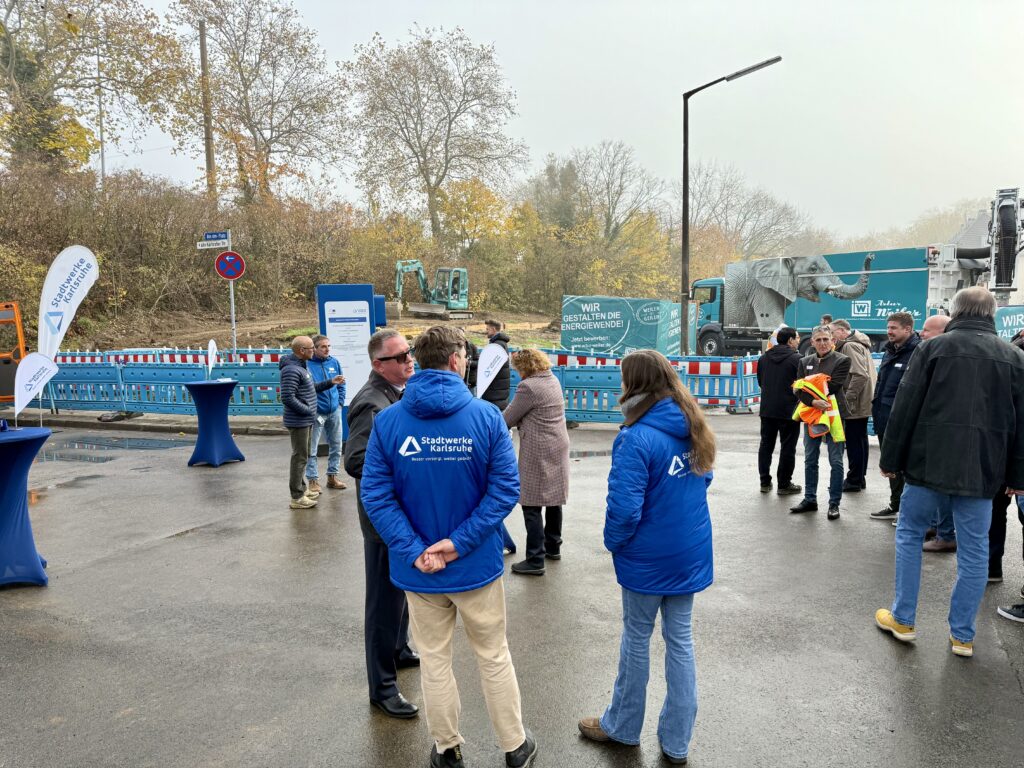 Die Stadtwerke Karlsruhe GmbH erhält ein Förderdarlehen von bis zu 270 Millionen Euro von der Europäischen Investitionsbank (EIB). Hierzu fand am 10. November 2025, ein Pressetermin an einer Fernwärmebaustelle in Durlach statt.