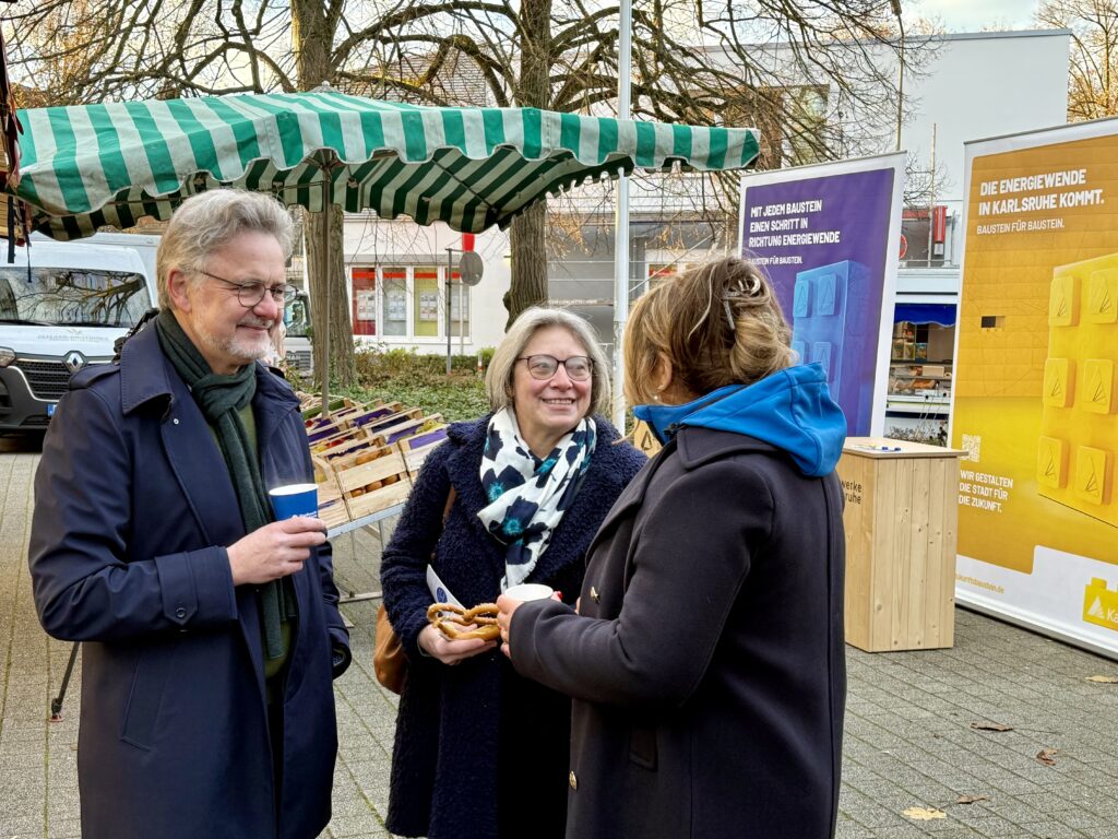Nachrichten Kampagne „Zukunftsbaustein“: Stadtwerke und Stadt informierten bei Vor-Ort-Aktion in Rüppurr