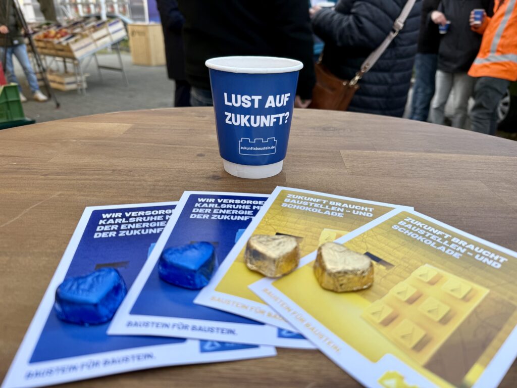 Die Aktion fand im Rahmen der Kampagne „Zukunftsbaustein“ statt, die die Stadtwerke Karlsruhe, die Stadt Karlsruhe und der Stadtwerke Karlsruhe Netzservice ins Leben gerufen haben, um Bürgerinnen und Bürger aktiv über die Energiewende und die dafür notwendigen Baumaßnahmen zu informieren.