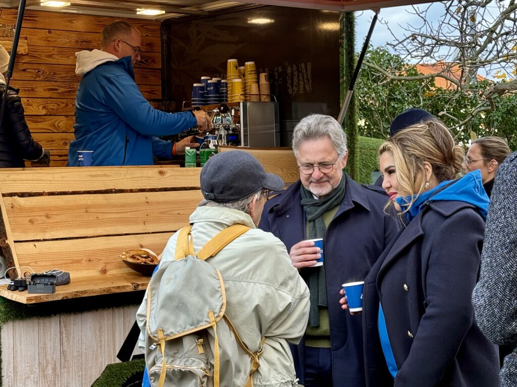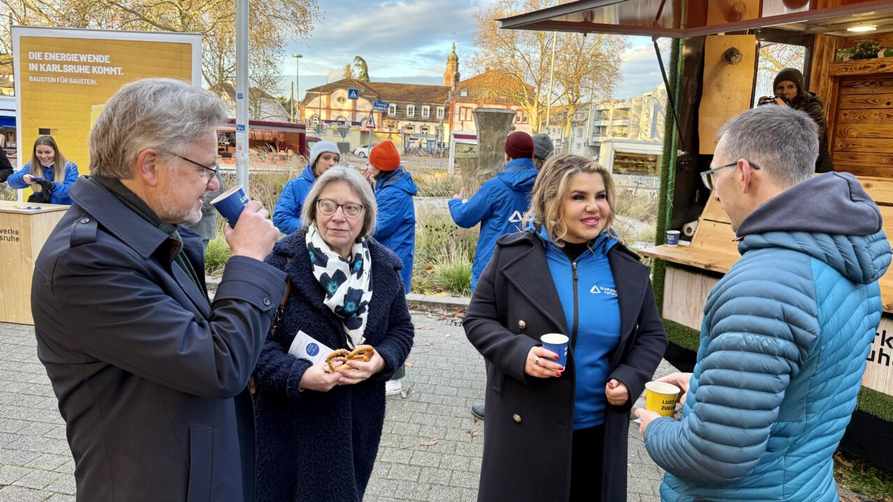 Stadt Karlsruhe und Stadtwerke Karlsruhe informierten am Mittwochmorgen, 19. November 2025, bei gratis Kaffee über die gemeinsame Kampagne „Zukunftsbaustein“: