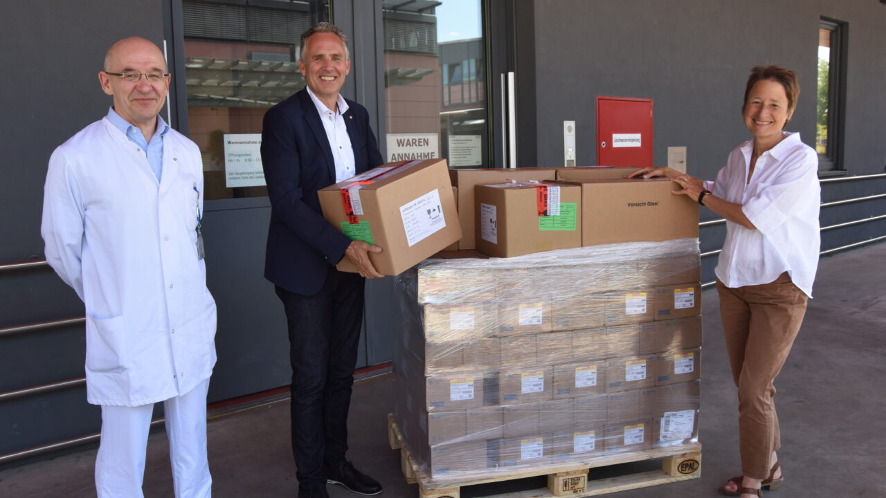 „Mein besonderer Dank gilt dem Direktor der Kinderchirurgischen Klinik Prof. Dr. Peter Schmittenbecher, der die Zusammenstellung der medizinischen Hilfsmittel unterstützt hat sowie unserem Apothekendirektor Dr. Christian Degenhardt für die Bereitstellung der Medikamente“, betonte Markus Heming, Kaufmännischer Geschäftsführer des Klinikums.