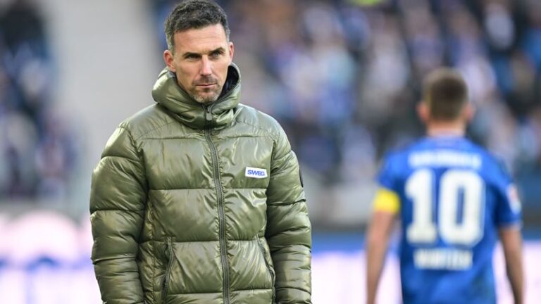 Christian Eichner, KSC-Cheftrainer: „Es war eine sehr ordentliche erste Hälfte von meiner Mannschaft in puncto Organisation gegen den Ball. Teilweise durch den Fehler vom Gegner, teilweise auch durch eine gute Balleroberung beim 1:0. Insgesamt gesehen fand ich danach unser Spiel nicht gut.“