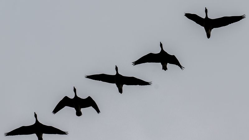 Beobachtet wurden vier Gänsearten: Bläss-, Weißwangen-, Kurzschnabel- sowie Saatgänse. Das sind arktische Zugvögel, die ihren Winter in Norddeutschland, Dänemark und den Niederlanden verbringen. Normalerweise fressen oder ruhen die Tiere den ganzen Tag, um möglichst wenig Energie zu verbrauchen.