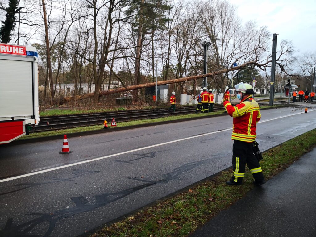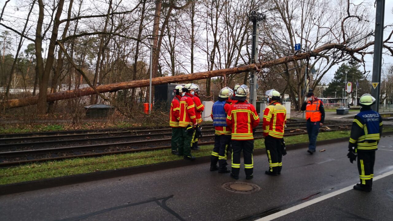 Polizei & Feuerwehr Karlsruhe Sturm über Karlsruhe: Baum stürzt auf Oberleitung in der Waldstadt