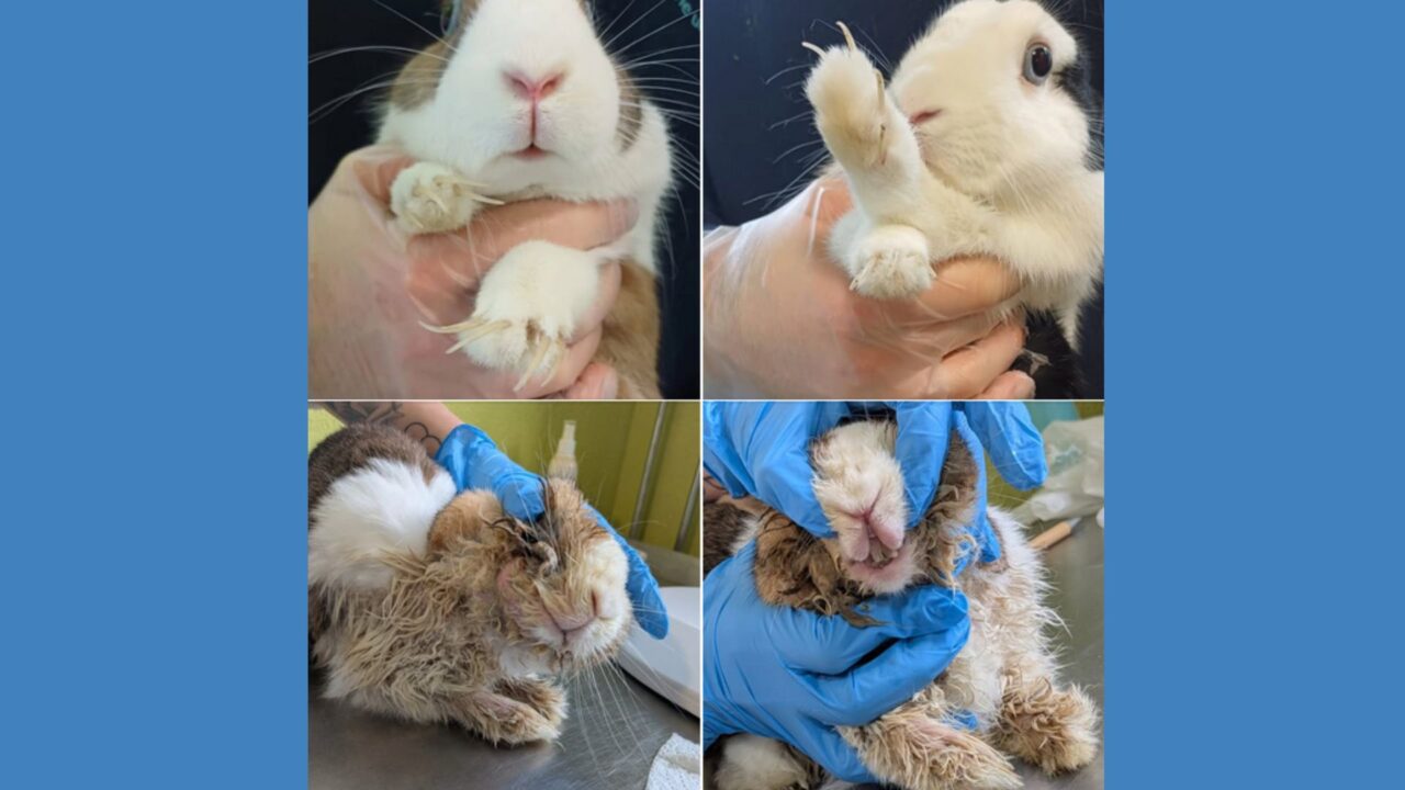 Viel zu lange Krallen, schlechte Zähne und Verschmutzungen: Am Dienstag, 27. Januar 2026, wurden im Tierheim Karlsruhe vier Kaninchen in einem sehr schlechten Pflegezustand abgegeben.