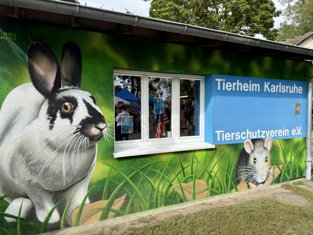 Wir haben bei den Hunden mehrere Langzeit-Insassen vermitteln können. Des Weiteren können wir hier uns jeden Tag über ein schönes Graffiti an unsrem Bürogebäude freuen, das ehrenamtlich gemacht wurde von einem Streetart-Künstler aus Karlsruhe.