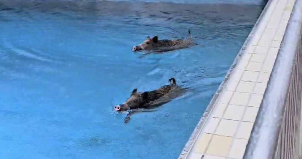 News Tierischer Freibad-Besuch: Wildschweine gehen im Karlsruher Wellenbecken schwimmen