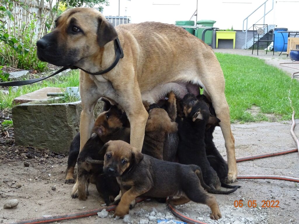Hund aus Hochbeet mit zehn Welpen. | Quelle: Dr. Yvonne Regier