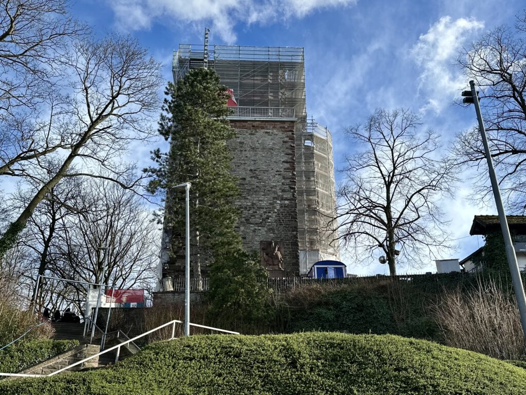 Die gute Nachricht vorweg: Im August 2024 sollen die Sanierungsarbeiten auf dem Turmberg enden. Bereits seit Juli 2022 ist der historische Turm in ein Gerüst gehüllt und die dazugehörige Aussichtsplattform seit Jahren nicht mehr nutzbar.