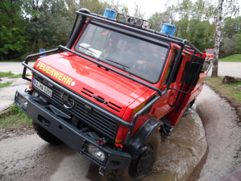 Wie der Kreisfeuerwehrverband Karlsruhe berichtet, waren am Samstag, 24. September 2022, vier Unimog-Löschfahrzeuge auf dem Karlsruher Landkreis auf Unimog Testgelände in Ötigheim unterwegs.