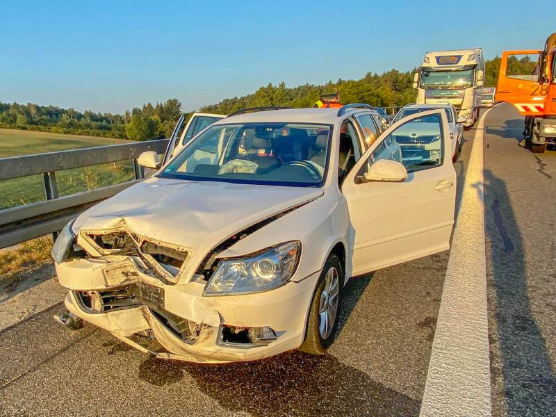 Die Einsatzkräfte mussten die Fahrbahn daraufhin von ausgelaufenem Diesel reinigen. Es bildete sich ein mehr als zehn Kilometer langer Rückstau. Fünf Fahrzeuge wurden abgeschleppt. Die Polizei schätzt den Schaden auf etwa 50.000 Euro.