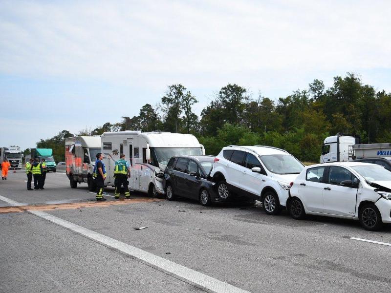 Es kam laut Polizei zu einem Rückstau von mehreren Kilometern Länge. An dem Serienunfall waren auch zwei Wohnmobile beteiligt.