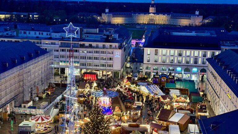 Am Montag, 24. November 2025, beginnt der Karlsruher Christkindlesmarkts in Karlsruhe. Bis zum 23. Dezember 2025, kann täglich von 11:00 Uhr bis in die Abendstunden auf dem Marktplatz und dem Friedrichsplatz in die Adventsstimmung eingetaucht werden.