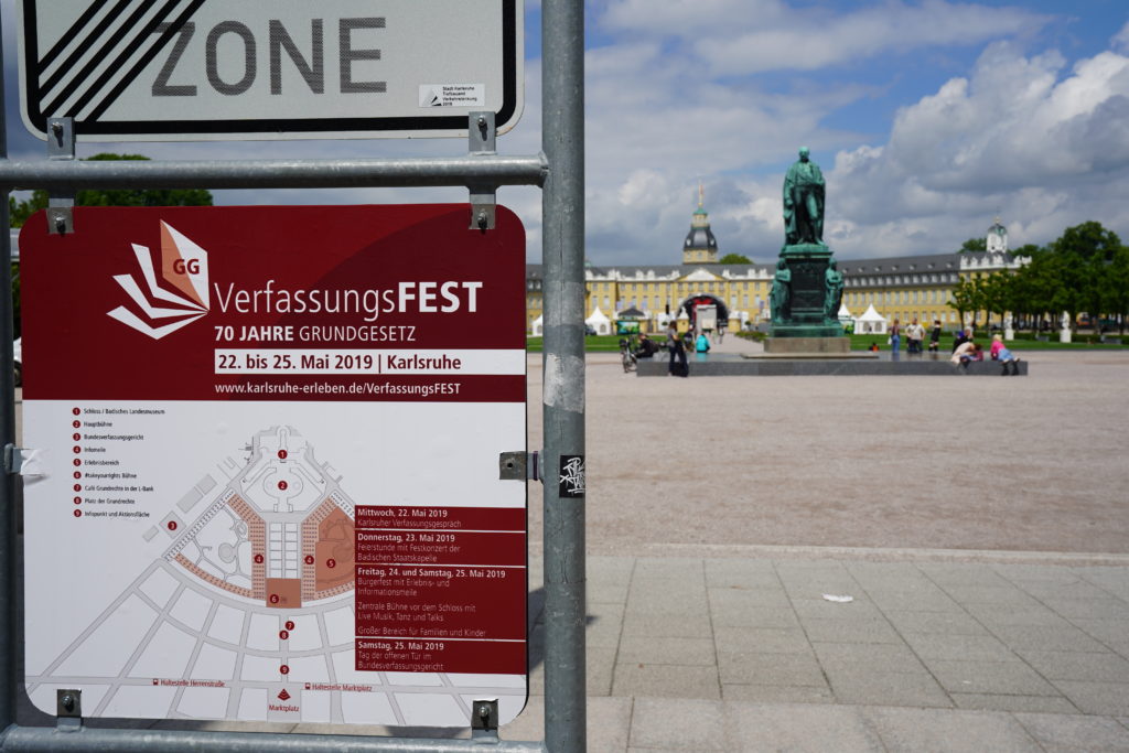 70 Jahre Grundgesetz – dieser Geburtstag kann natürlich nicht unbeachtet bleiben. Daher wird ab Mittwoch, den 22. Mai 2019, bis Samstag, den 25. Mai 2019, mit einem VerfassungsFEST, rund um den Karlsruher Schlossplatz, das große Jubiläum gefeiert.