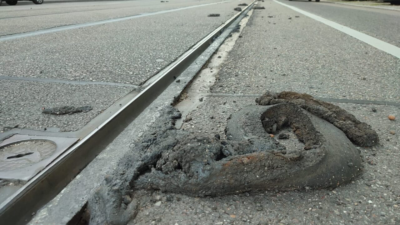 Die Probleme hatten am Dienstag vor zwei Wochen begonnen und den Verkehr in der gesamten Region beeinträchtigt. Sogenannte Vergussmasse war zwischen Asphalt und Gleisen an mehreren Stellen weich geworden. Die Bahnen verteilten den Stoff beim Durchfahren und rissen dadurch weitere Stellen auf. Gleise und Fahrzeuge wurden verklebt.