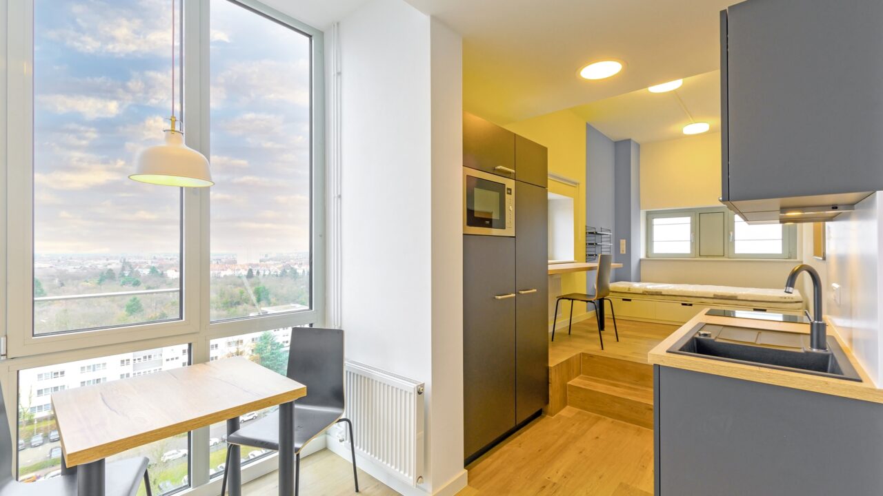 Alle Appartmentes und Zimmer sind Nichtraucherzimmer, bereits eingerichtet und verfügen über Tageslichtfenster mit Verdunklungsvorhängen. Alle Einheiten haben zudem ein eigenes Badezimmer mit Dusche. Je nach Kategorie liegt die Zimmergröße zwischen 13 und 29 Quadratmetern.