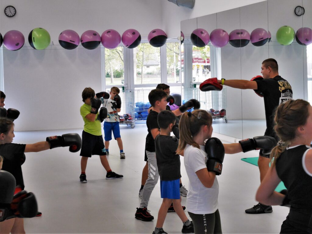 Vincent Feigenbutz beim Boxtraining mit Kindern im Fit-in in Karlsruhe. | Quelle: Melanie Hofheinz