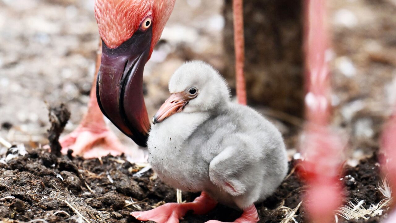 Vor-Osterüberraschung im Karlsruher Zoo: Dort wächst ein kleiner Zwergflamingo auf. Warum der nicht von Anfang an rosa ist und wie selten solche Zuchterfolge sind.