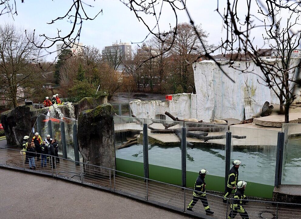 News Wasserstand abgesunken: Feuerwehr hilft Eisbären im Zoo Karlsruhe