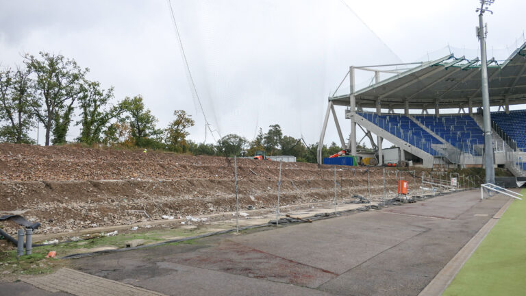 Der Abbau der provisorischen Nordtribüne im Wildpark ist abgeschlossen. Hier waren zuletzt die Stehplätze der Anhänger des Karlsruher SC untergebracht. Mit dem Abbau des Provisoriums wird nun der Start der letzten Bauphase im BBBank Wildpark eingeläutet.