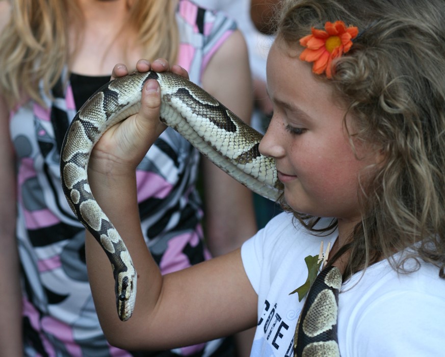 Am Ende hat niemand mehr Angst vor den Tieren, und es bleibt die Erinnerung an ein tolles Gruppenerlebnis, bei dem die Zuhörer einiges lernen konnten. Schlangen, zum Beispiel, könne man getrost als wenig intelligent bezeichnen. „Es kann gut sein, dass sie nach Futter schnappt und dabei in ihren eigenen Körper beißt. Das dauert dann schon mal fünf Minuten, bis sie merkt, wo das Problem liegt“. Die Schlange als listige Verführerin präsentiert vom Dschungelbuch oder der Bibel? Eher nicht.