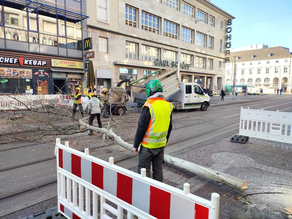 In Vorbereitung zu den im Frühjahr 2023 beginnenden Umgestaltungsmaßnahmen in der Kaiserstraße werden ab Freitag, 20. Januar 2023, vier Platanen zwischen Marktplatz und der Kreuzstraße gefällt, darüber informiert die Stadt Karlsruhe in einer Pressemeldung,