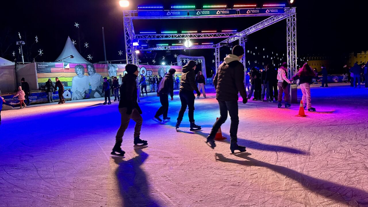 In den ersten sechs Wochen flitzten rund 37.000 Läuferinnen und Läufer über die Eisbahn vor dem Karlsruher Schloss. Ein großer Teil der Schlittschuhläuferinnen und -läufer waren Kinder, Schülerinnen und Schüler sowie Studierende.